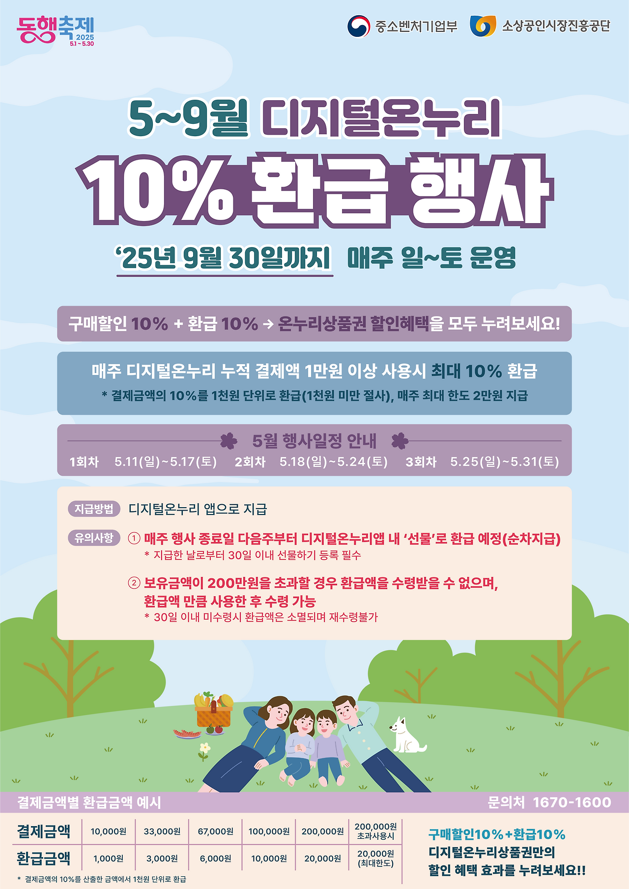 | 🎁 환급 혜택 | 주간 누적 결제액의 10%를 디지털 온누리상품권으로 환급 |