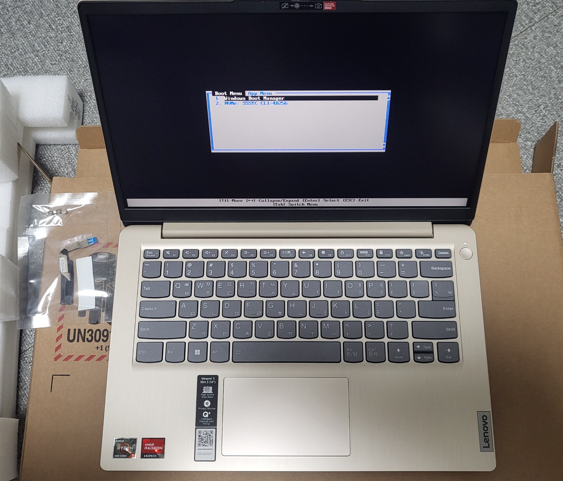 Free DOS 제품이라 근처 다이소에서 5천원 짜리 usb 메모리 16gb 구입 후, 윈도우 10 을 설치해 주었다.