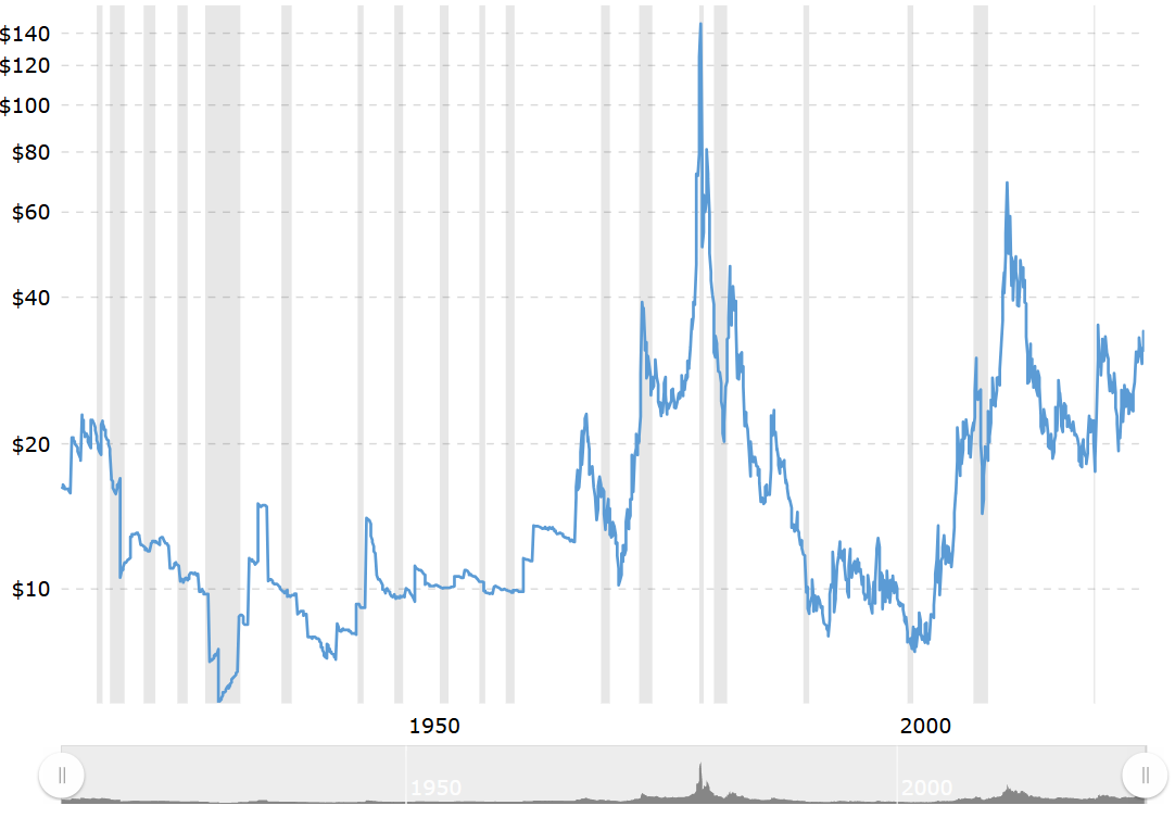 - 1980~2000년대 초반: 산업 침체, 실버 공급 과잉 → 장기 하락세