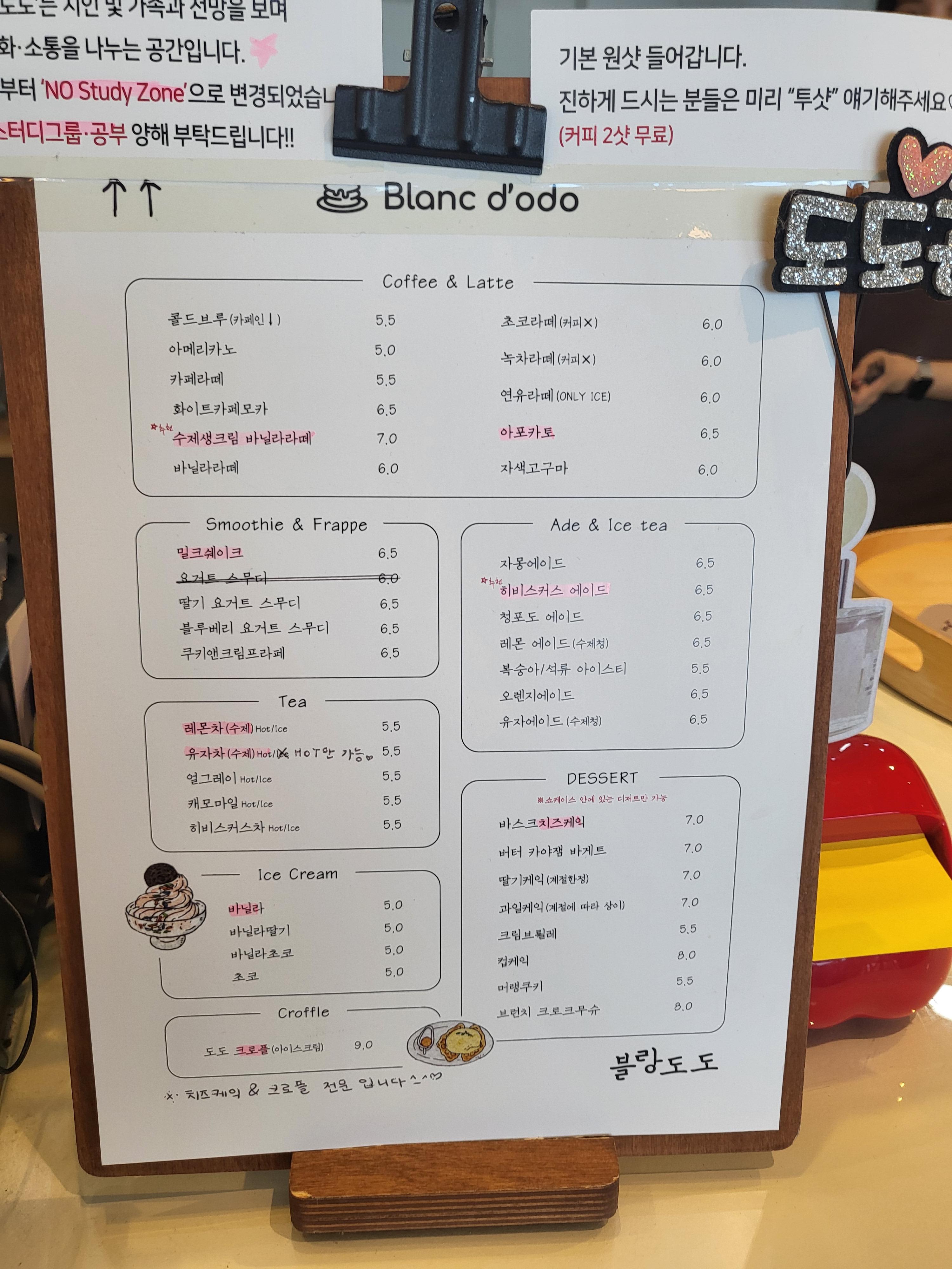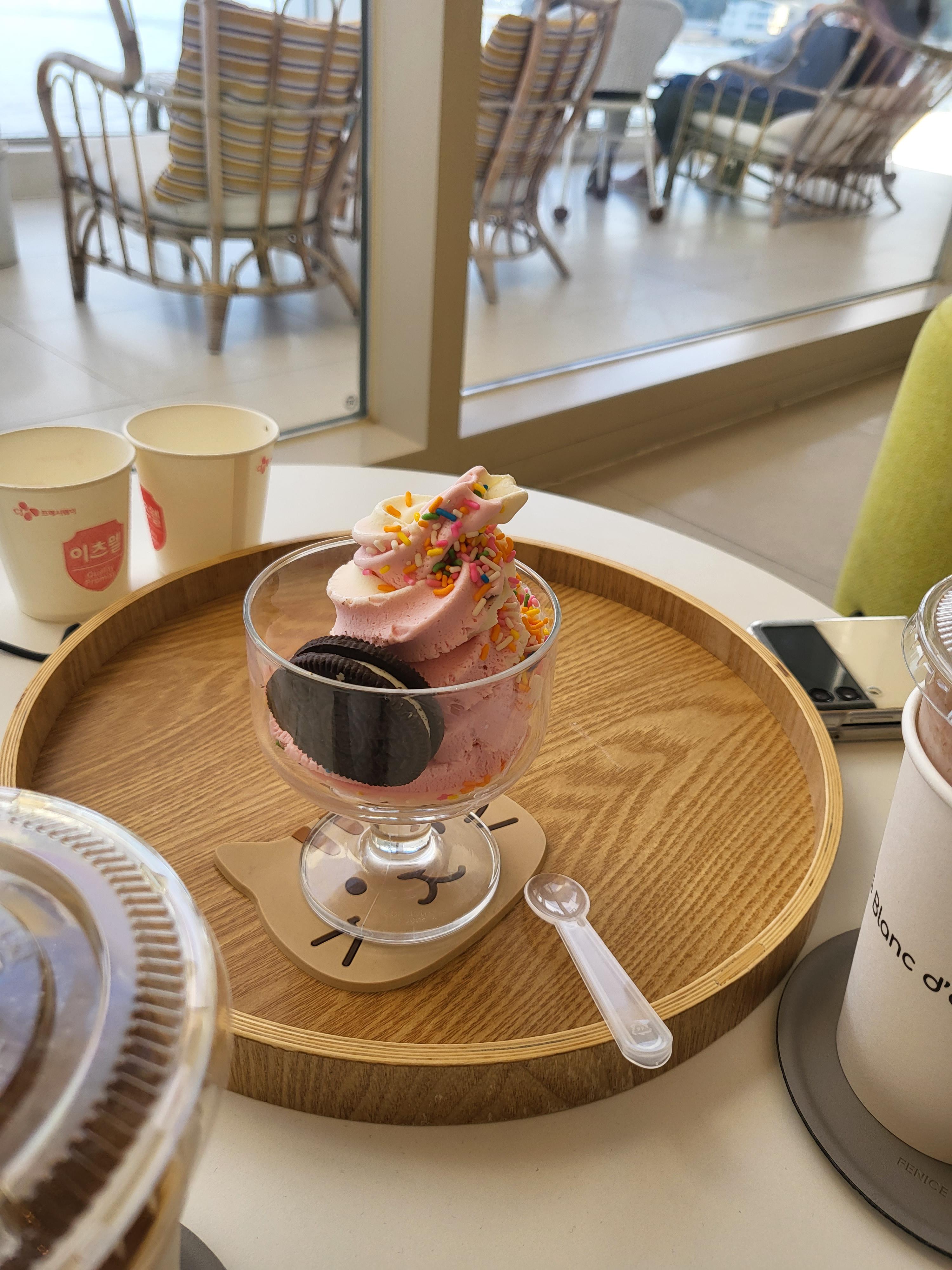 일단 카페로 들어가서 꽤나 지쳐서인지 달달한게 당겨서 초코라떼, 바닐라딸기아이스크림을 주문했다.